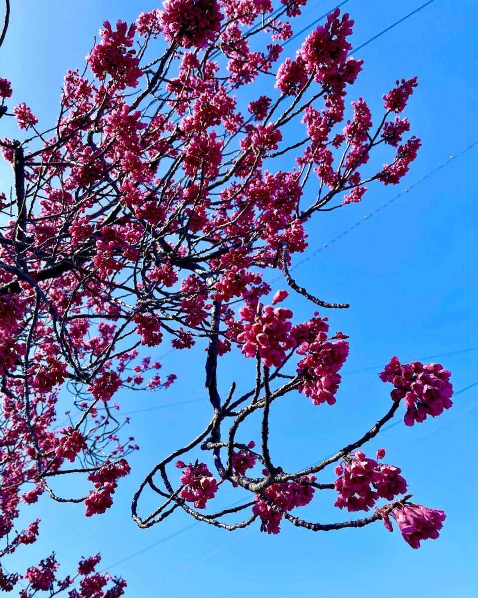 遠くから濃いピンクの花の咲いた木を見つけて…👀