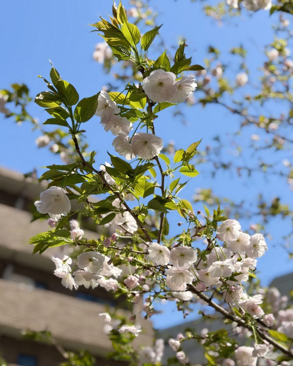 珍しい白い八重桜を発見!👀